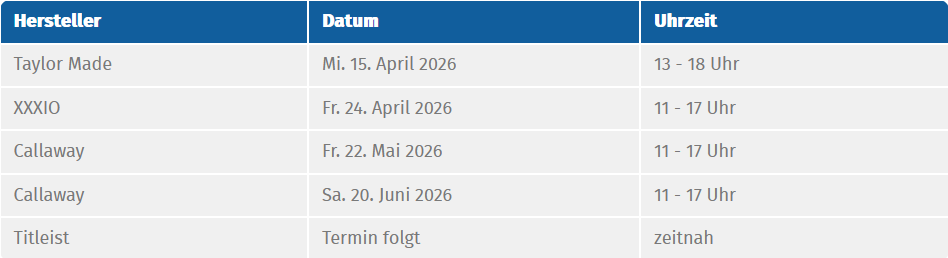Entdecken Sie frische Trends und exklusive Styles aus der Mode, für den modernen Golfer. Auch im Hardware Bereich dürfen Sie sich auf viele neue Schläger und Zubehör freuen, welche Ihr Spiel auf das nächste Level heben. Lassen Sie sich professionell von Nina Krumm und ihrem erfahrenen Team beraten und finden Sie genau das Richtige für Ihr Spiel. Das Golfshop Team um Nina Krumm freut sich mit Ihnen gemeinsam in eine erfolgreiche und stilvolle neue Saison zu starten. Da Ihre Golfleidenschaft das Beste verdient, wird es auch in diesem Jahr eine exklusive Gutscheinaktion geben - Sie bekommen als Mitglied wie gewohnt -10% Rabatt auf Ihren Einkauf, plus dem 10%-Vorteil aus Ihrem gewählten Gutscheinpaket. Somit haben Sie beim Kauf eines Gutscheines einen doppelten Vorteil! (Der Erwerb des Gutscheines ist bis zum 31. März 2026 möglich)